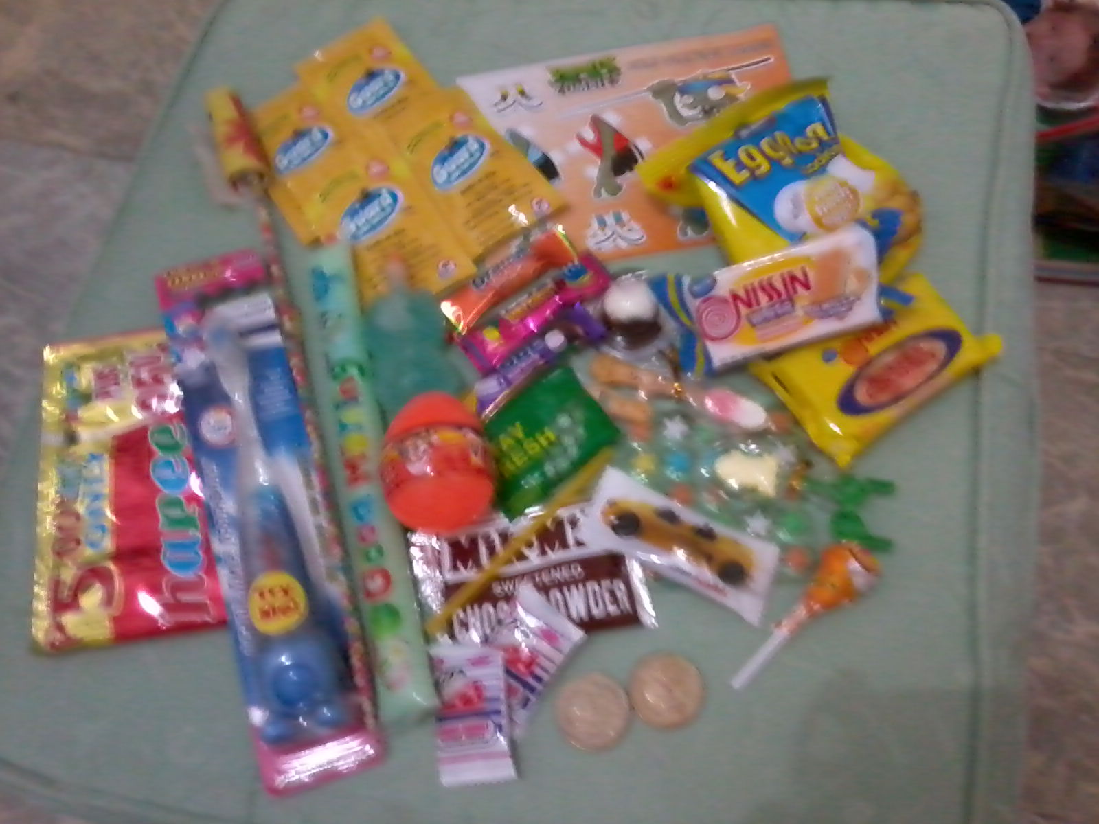 Aside from the items above, included inside the loot are candies, toys, biscuits and cookies and money tokens for each kid. Below is what each child got inside the loot bag…