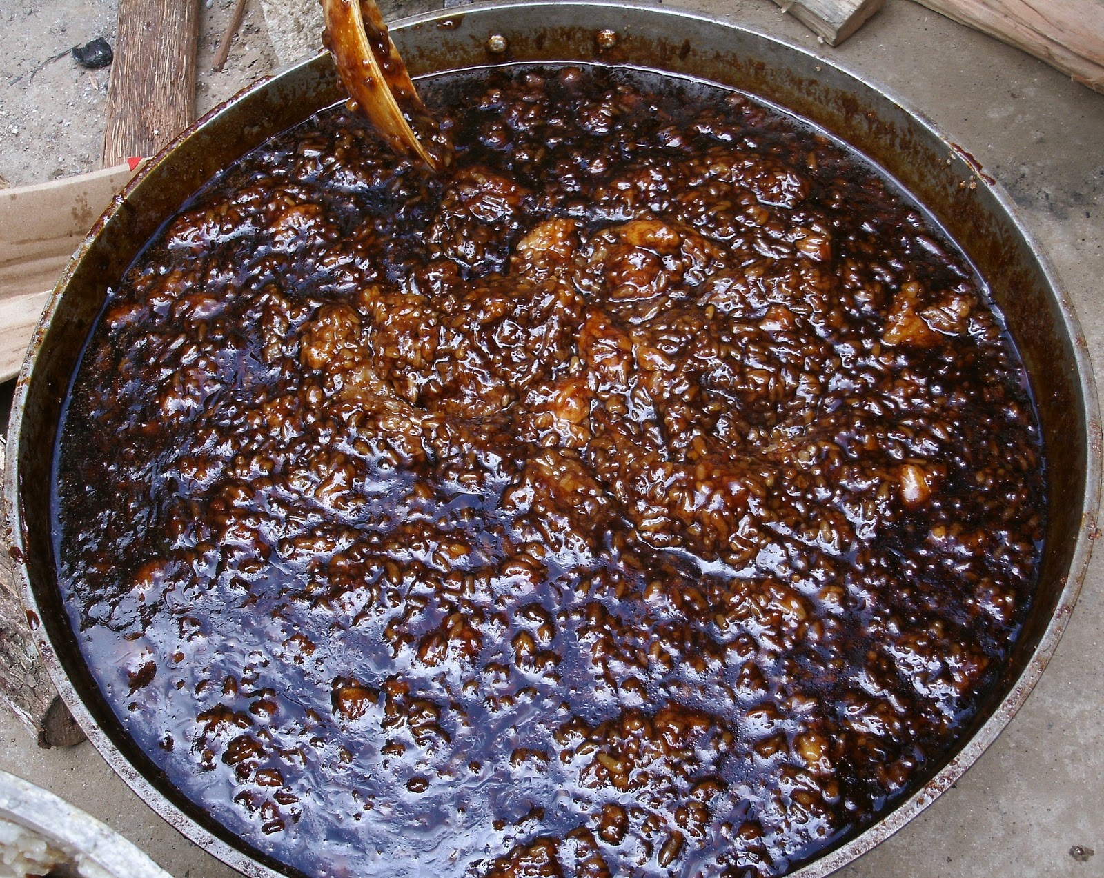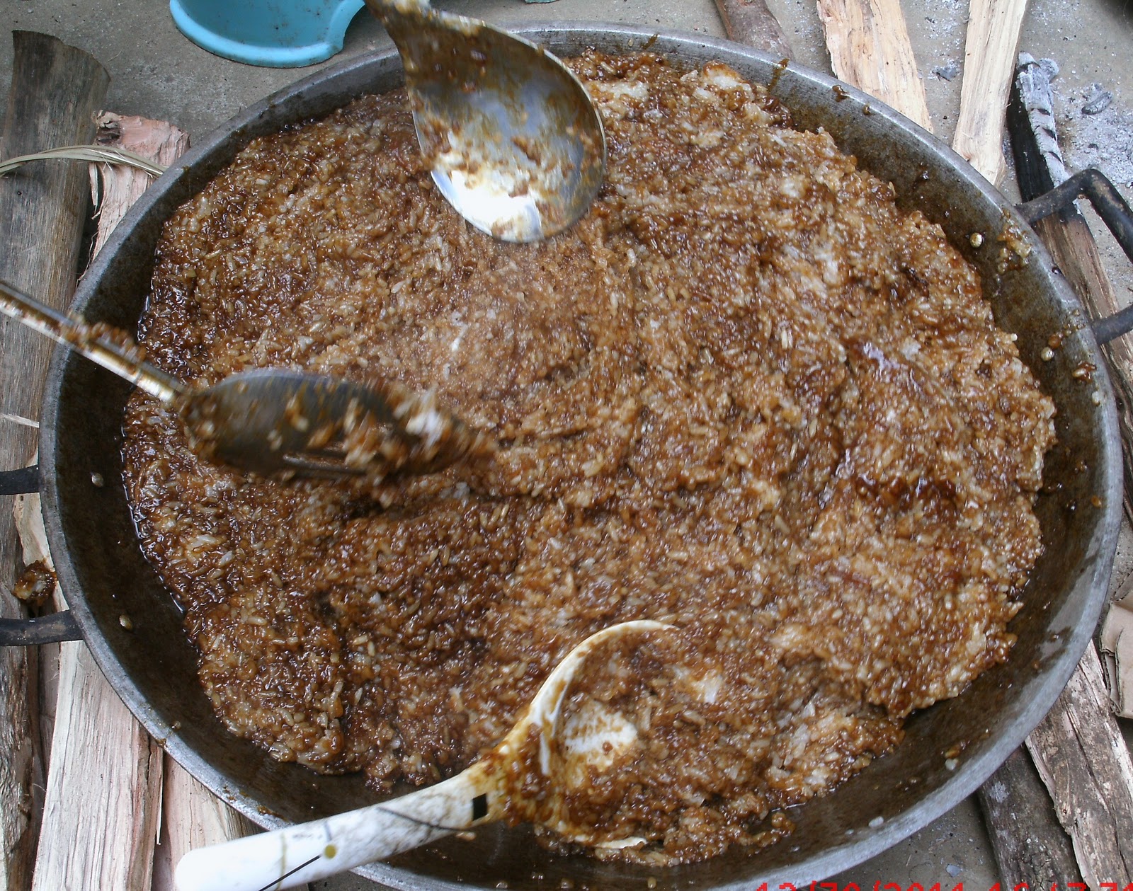 Venus and Rob in photo, are actually mixing the biko with the sugar syrup…